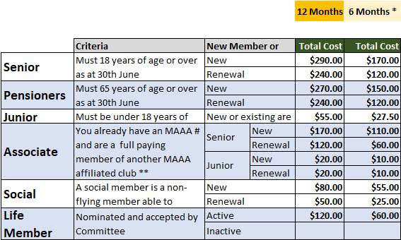 * MAAA only offer six month memberships to a new or renewing member who is joining after an absence from MAAA of 2 years or more. You must have have an AUS Number from MAAA and they will confirm if you are eligible. If you are not eligible you will need to pay the full annual membership at any time of the year.